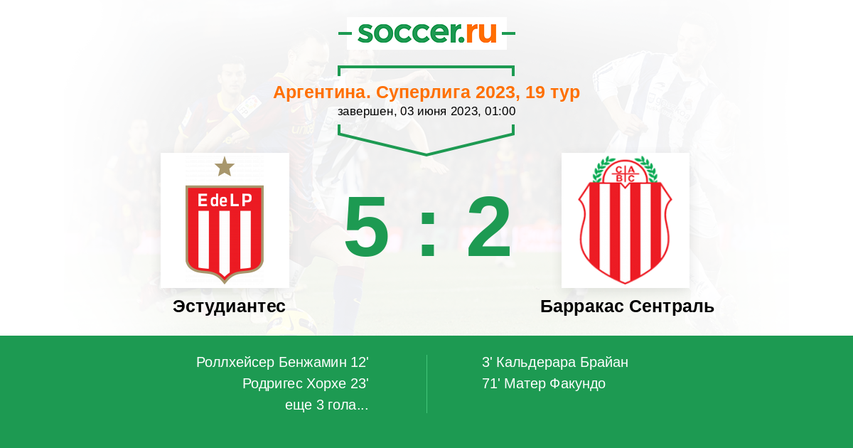 23' (2:1) Родригес Хорхе (30) (Соса Хосе (7))