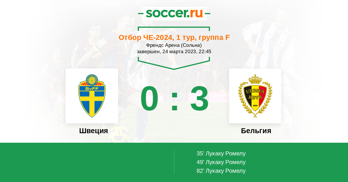 Швеция начинает новый отборочный путь, где будет открывать его матчем с главным фаворитами группы бельгийцами дома. "Тре крунур" это очень сбалансированная команда, которая не обладает столь мощным нападение, но хорошо использует ошибки соперника. ЧМ они пропустили из за поражения от Польши в решающем матче, после победы над чехами.