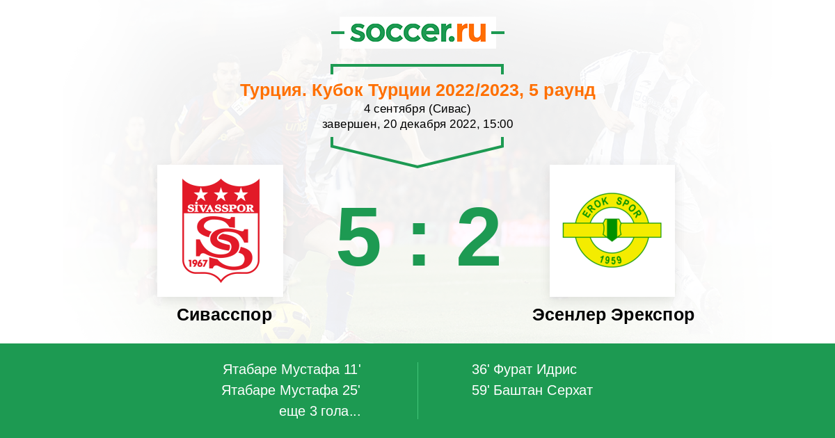 52' (4:1) Йесилюрт Эрдоган (17) (Саба Диа (11))