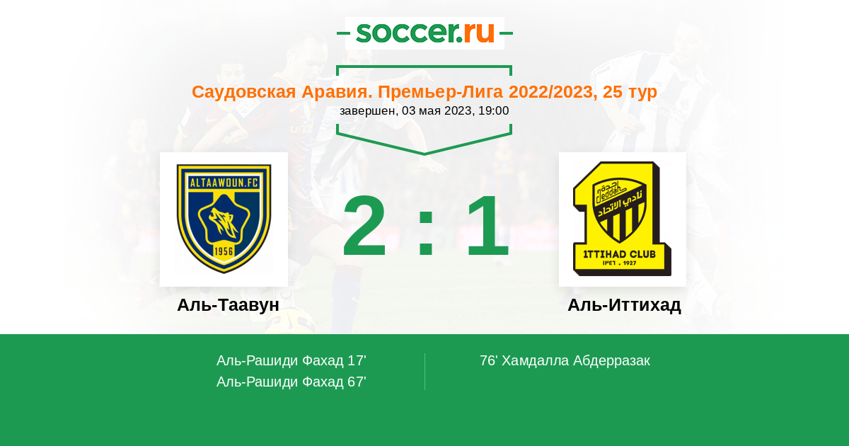 17' (1:0) Аль-Рашиди Фахад (7) (Аль-Нассер Саад (9))