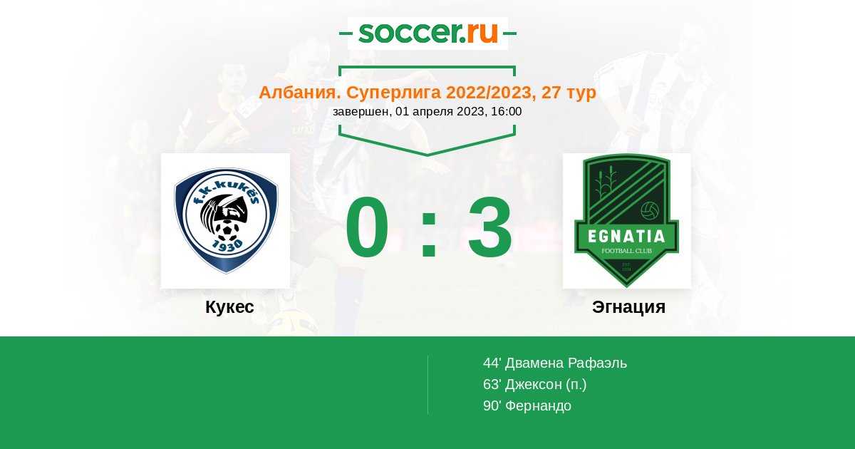 44' (0:1) Двамена Рафаэль