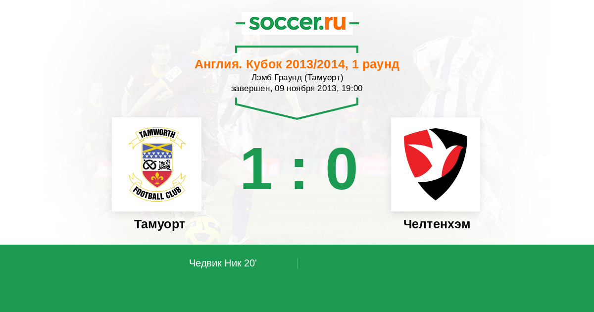 20' (1:0) Чедвик Ник (28)