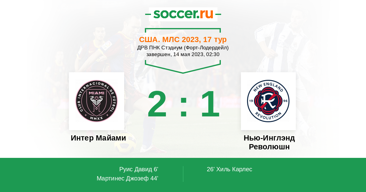 44' (2:1) Мартинес Джозеф (17) (Руис Давид (41))