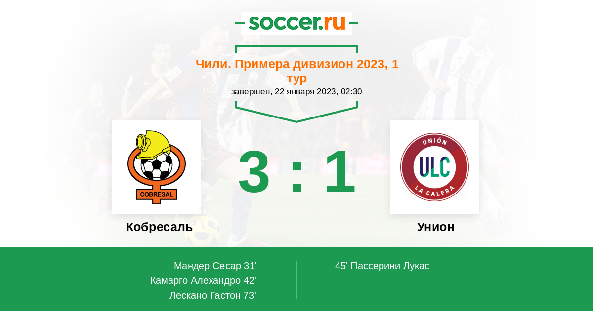 42' (2:0) Камарго Алехандро (6) (Лескано Гастон (11))