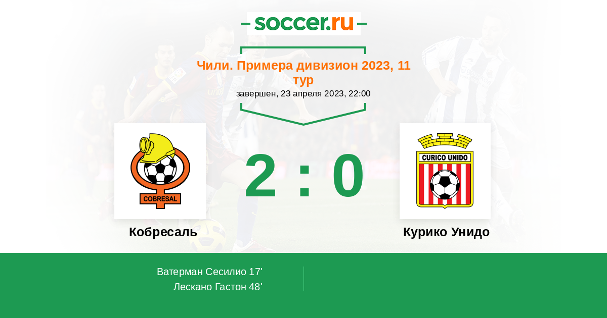 48' (2:0) Лескано Гастон (11) (Ватерман Сесилио (30))