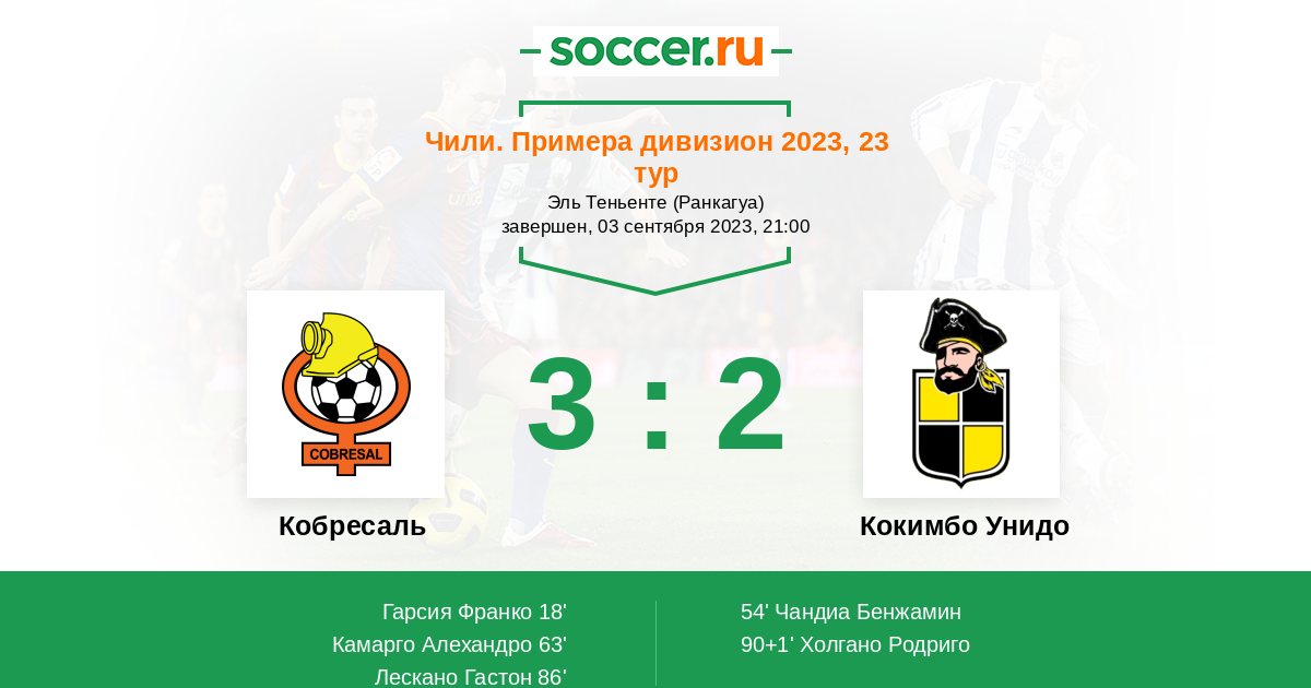 63' (2:1) Камарго Алехандро (6) (Сепулведа Нелсон (20))