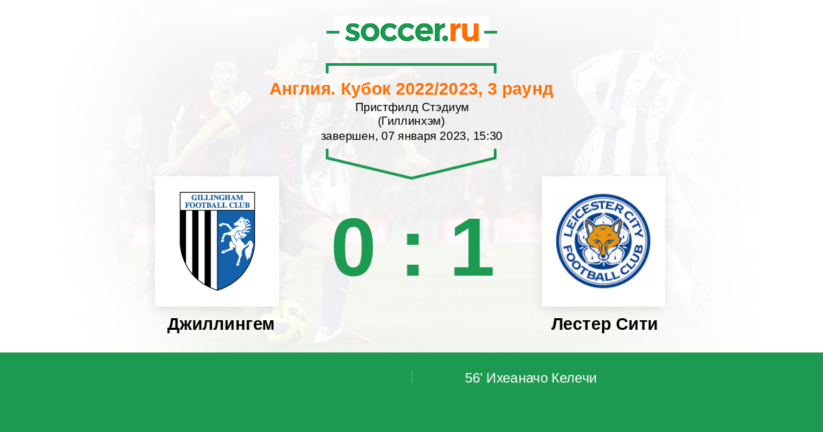 56' (0:1) Ихеаначо Келечи (14) (Варди Джейми (9))