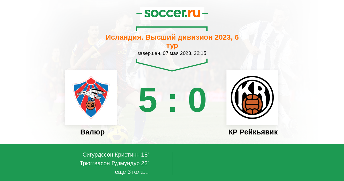 18' (1:0) Сигурдссон Кристинн (10) (Севарссон Биркир (2))