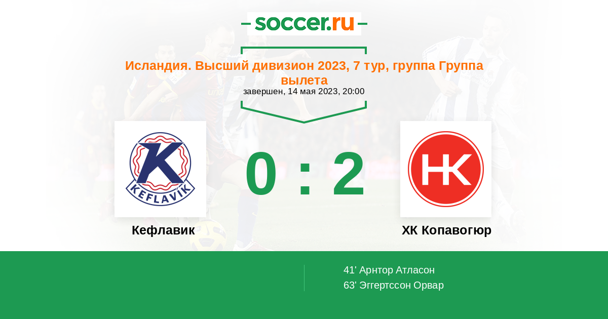 41' (0:1) Арнтор Атласон (8) (Андрасон Атли Храфн (10))