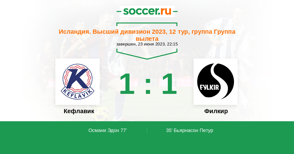 77' (1:1) Османи Эдон (19) (Хафпорссон Виктор (7))
