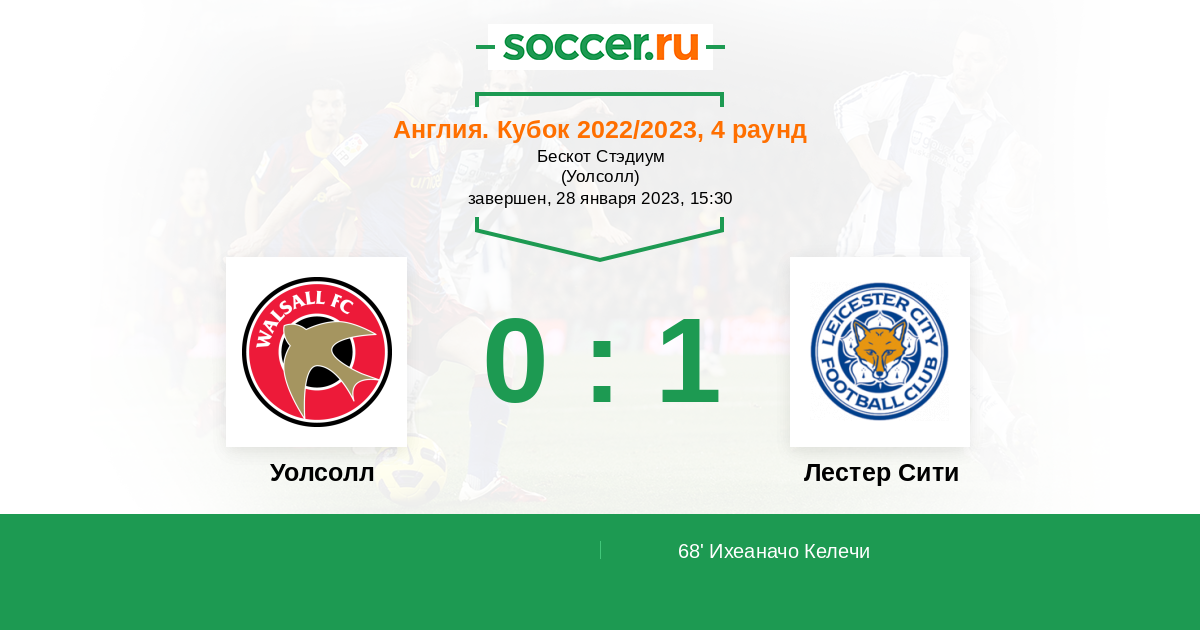 Я думаю что в этом противостоянии более чем явного фаворита на победу нет . Хотя и команда хозяев поля Уолсолл и является командой которая представляет вторую лигу . Команда гостей Лестер уж очень не убедительно играет в этом сезоне и наврядли будет вообще бороться за кубок, проблемы в чемпионате нужно решать в первую очередь. Ведь команду отделяет всего одно очко от зоны вылета.