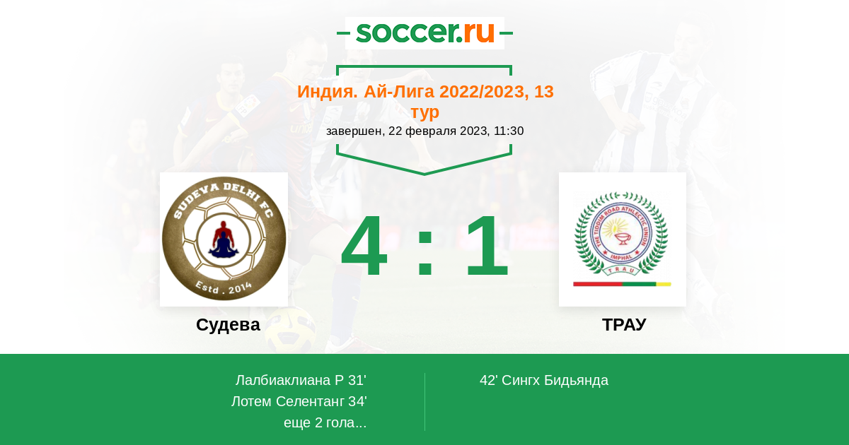 69' (4:1) Карлос Теко (14) (Лалбиаклиана Р (48))