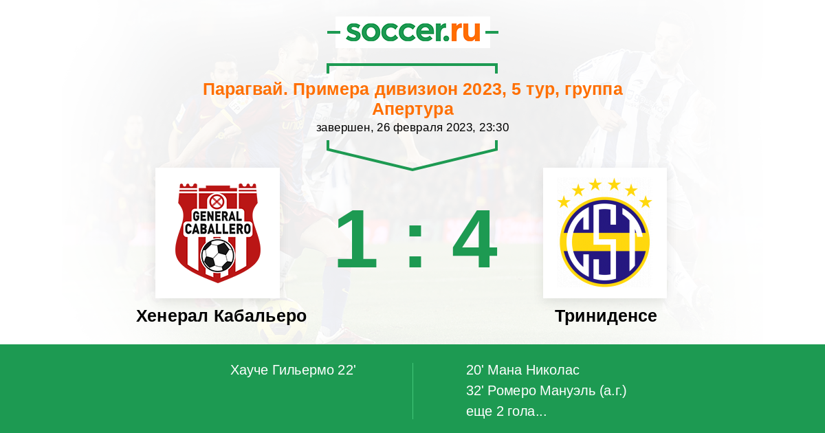 32' (1:2) Автогол Ромеро Мануэль (3)