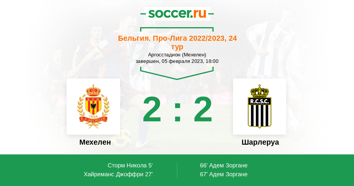 67' (2:2) Адем Зоргане (6) (Ван Клеемпут Жюль (4))