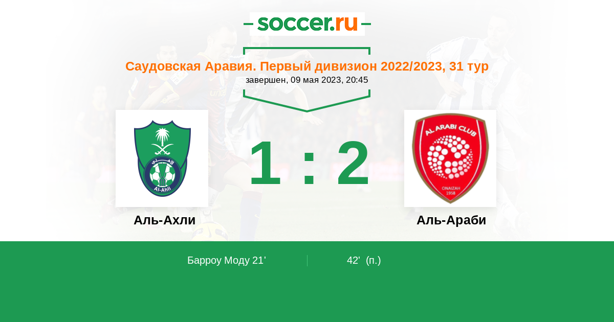 В предстоящем матче 31 - го тура Первого Дивизиона Саудовской Аравии между командами Аль-Ахли и Аль-Араби, более чем явным фаворитом на победу является команда хозяев Аль-Ахли, так как они играют лучше.