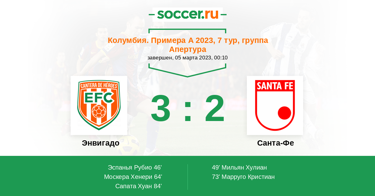 Гол46' (1:0) Эспанья Рубио (11) (Уртадо Уилльям (18))