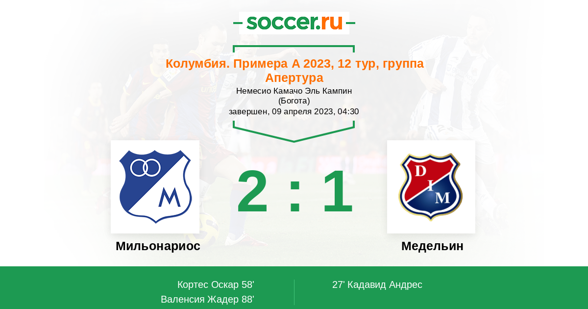 58' (1:1) Кортес Оскар (34) (Катаньо Даниэль (10))