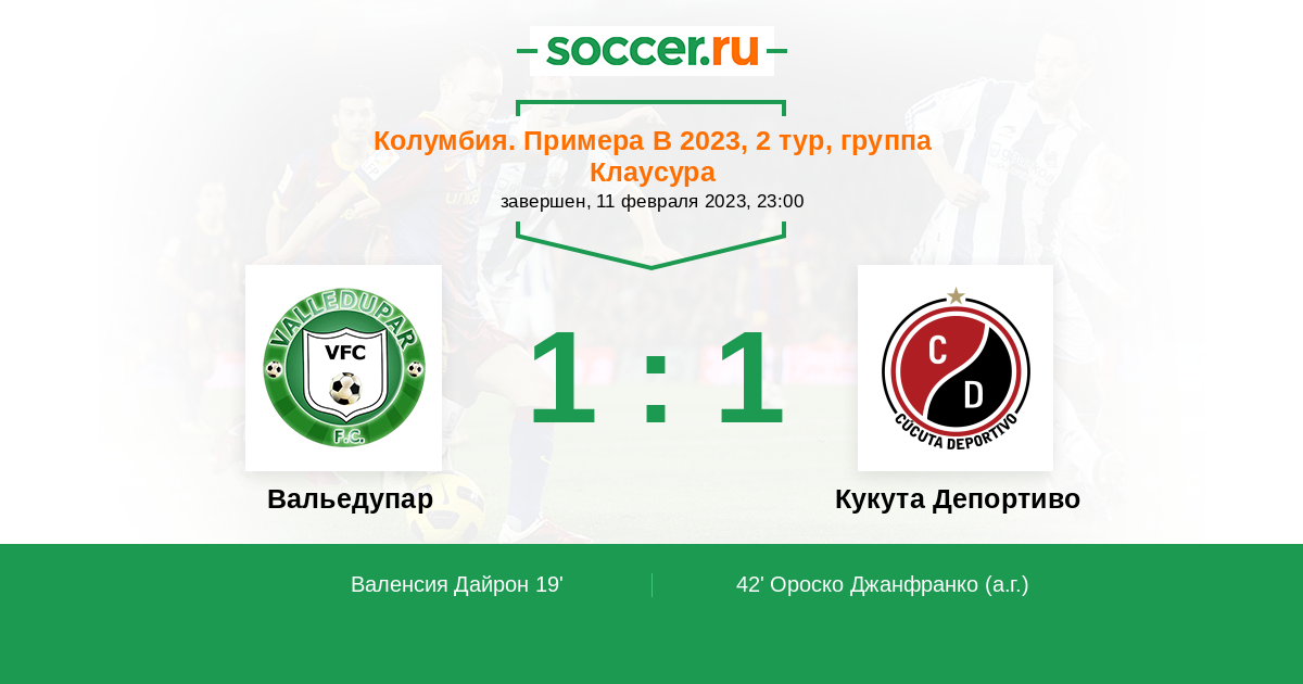 42' (1:1) Автогол Ороско Джанфранко