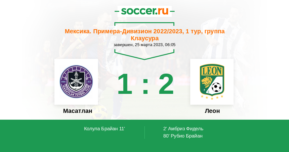 80' (1:2) Рубио Брайан (15) (Морено Иван (3))