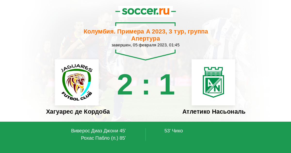 45' (1:0) Виверос Диаз Джони (17) (Гевара Хулиан (5))