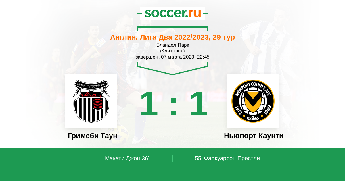 55' (1:1) Фаркуарсон Престли (6) (Льюис Аарон (14))