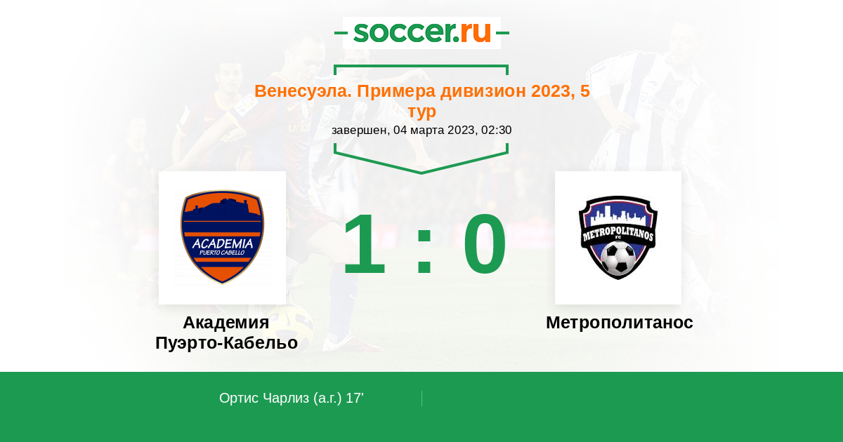 Ортис Чарлиз 1:0(А) 17’