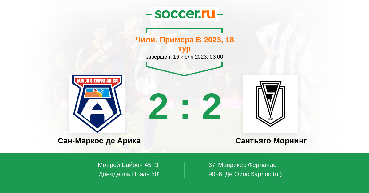 Сан-Маркос де Арика - Сантьяго Морнинг! Арика сугубо домашняя команда и львиное количество очков они набрали в родных стенах. К ним в гости приехал аутсайдер и грех не воспользоваться этим обстоятельством.