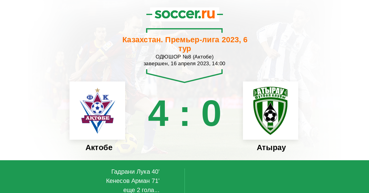 В предстоящем матче 6 - го тура казахстанской Примеьер - Лиги между командами Актобе и Атырау, явным фаворитом на победу является команда хозяев Актобе, так как они играют дома при своих болельщиках.