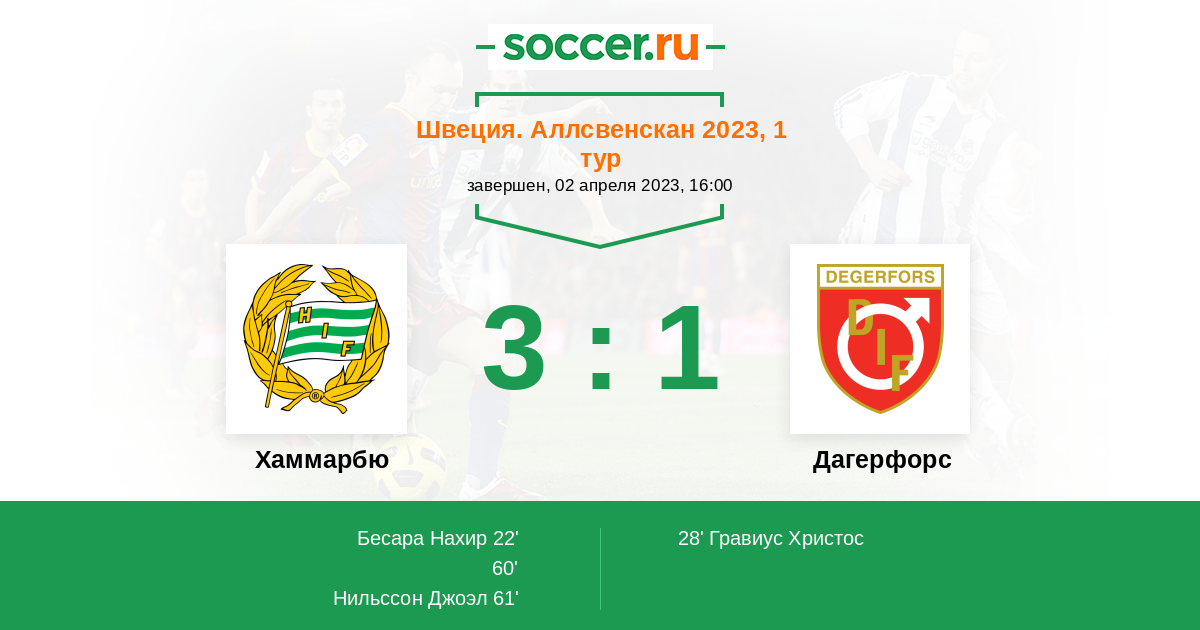 61' (3:1) Нильссон Джоэл (22) (Странд Симон (21))