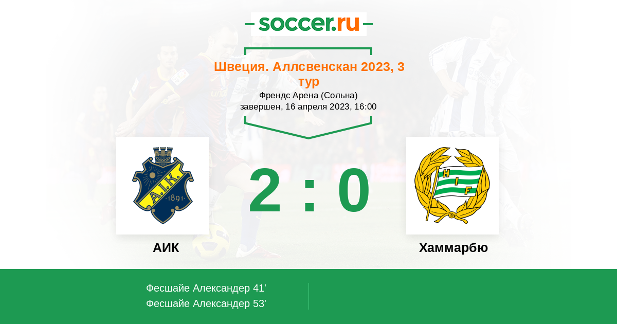 41' (1:0) Фесшайе Александер (47) (Хуссейн Билал (8))
