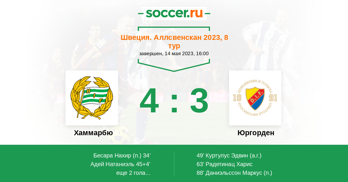 63' (3:2) Радетинац Харис (9) (Даниэльссон Маркус (3))