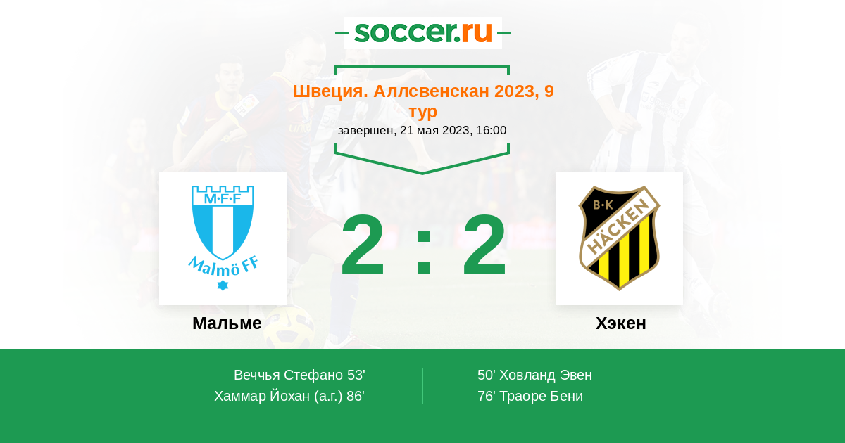 86' (2:2) Автогол Хаммар Йохан (3)