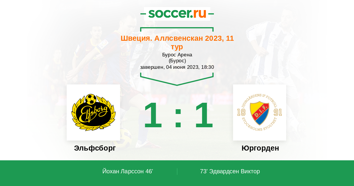46' (1:0) Йохан Ларссон (13) (Касем Ахмед (18))