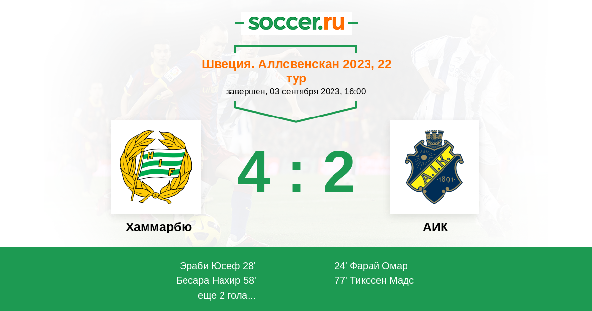 Гол90+1' (4:2) Дуканович Виктор (7) (Карлссон Маркус (36))
