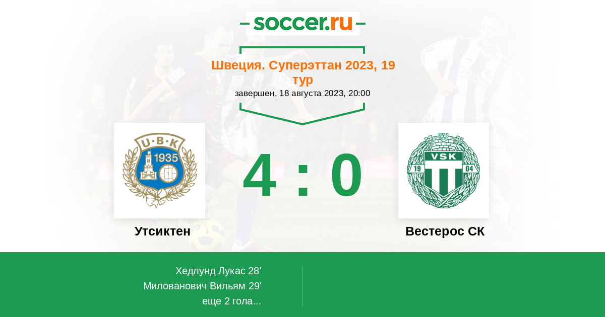45+1' (3:0) Автогол Магнуссон Херман (2)