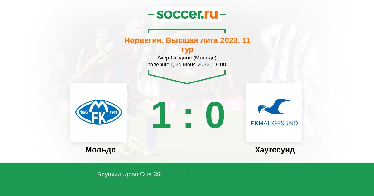39' (1:0) Брунхильдсен Ола (11) (Китолано Эрик (10))