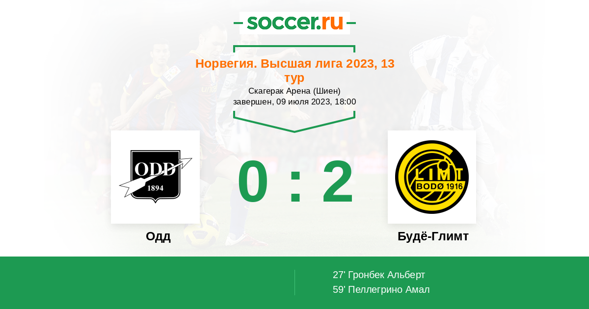 27' (0:1) Гронбек Альберт (8) (Фет Сондре (19))