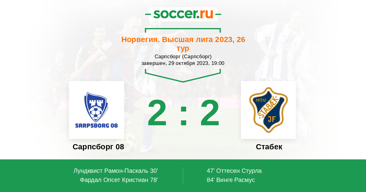 84' (2:2) Винге Расмус (17) (Вальстад Николас (11))