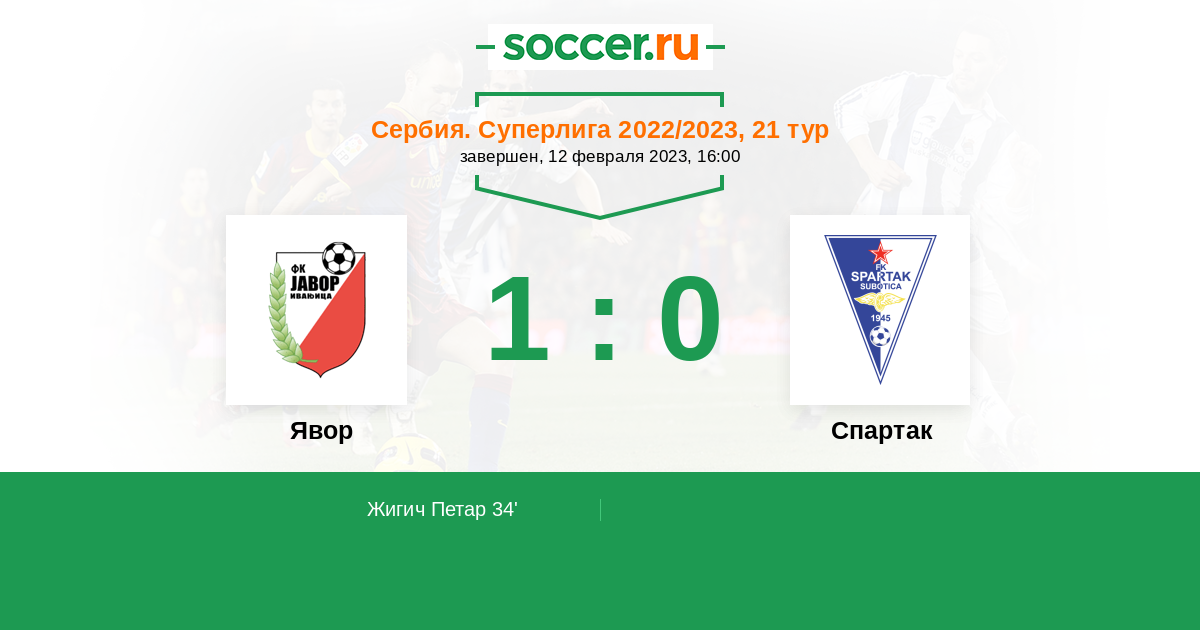 34' (1:0) Жигич Петар (18)