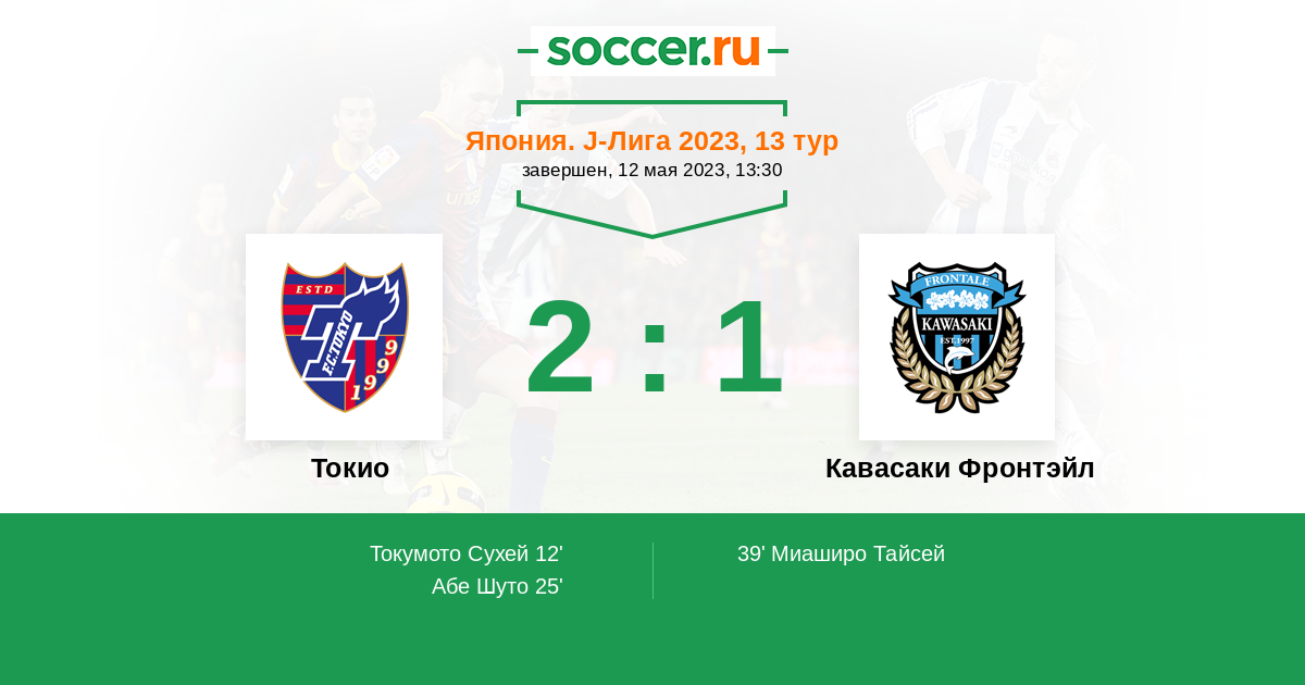 39' (2:1) Миаширо Тайсей (33) (Секо Тацуки (16))