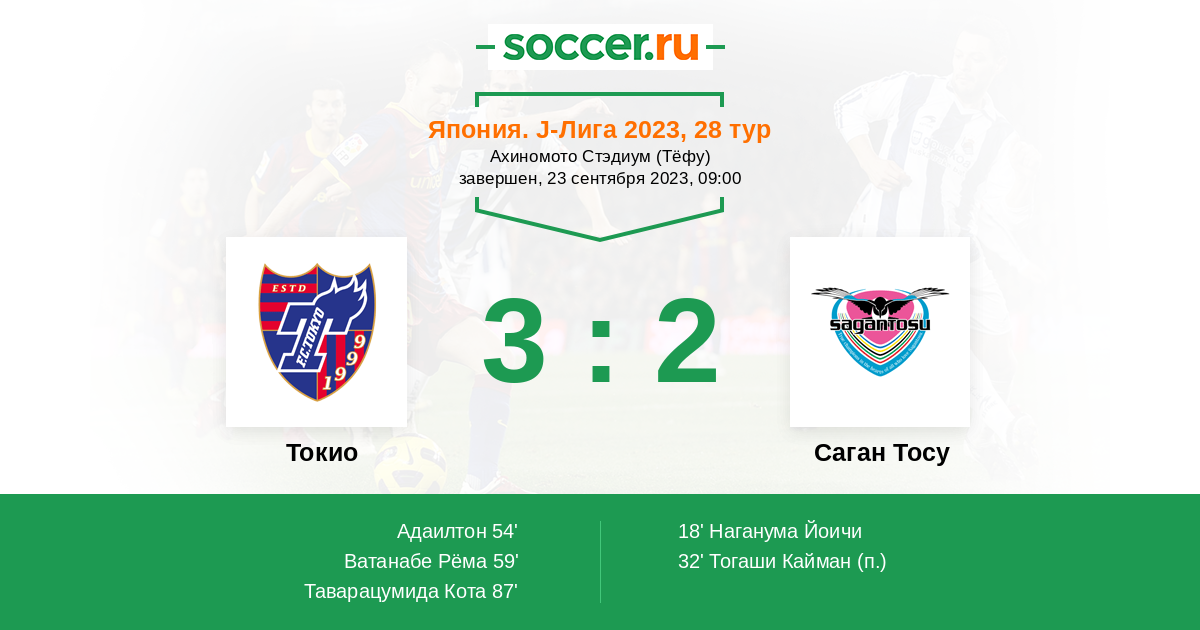 59' (2:2) Ватанабе Рёма (11) (Адаилтон (15))