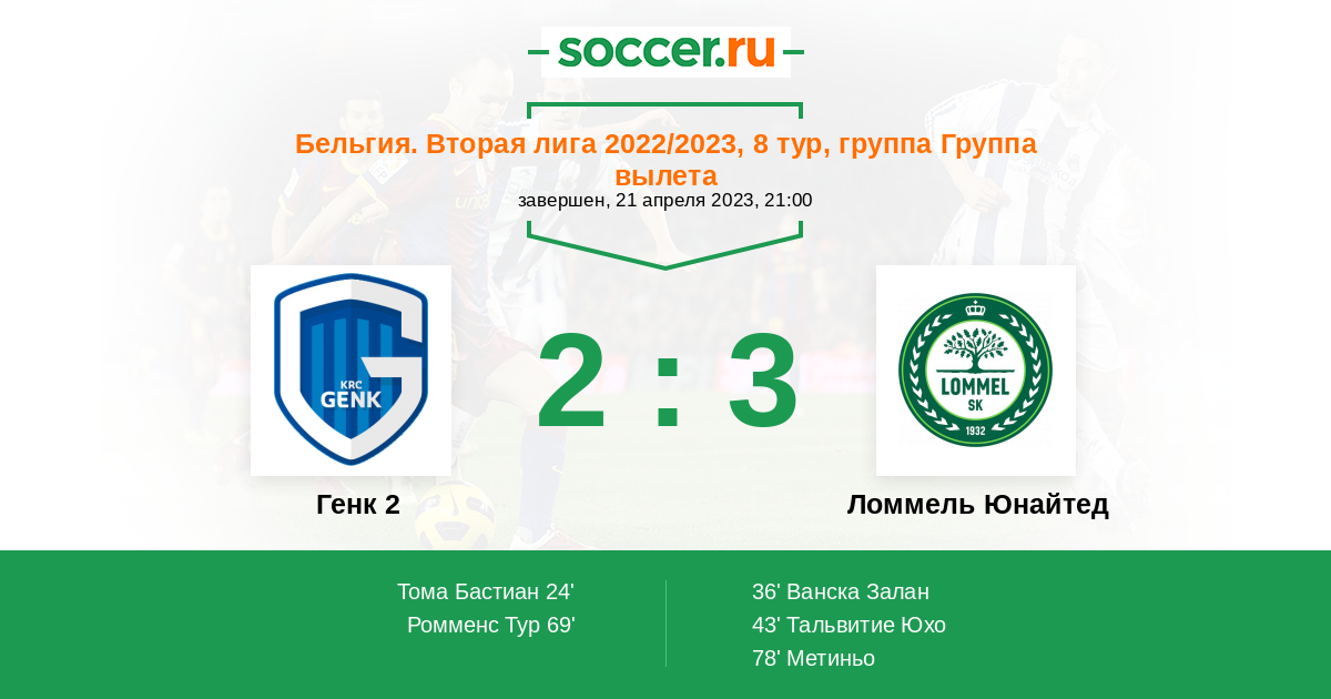 43' (1:2) Тальвитие Юхо (32) (Низе Роб (16))