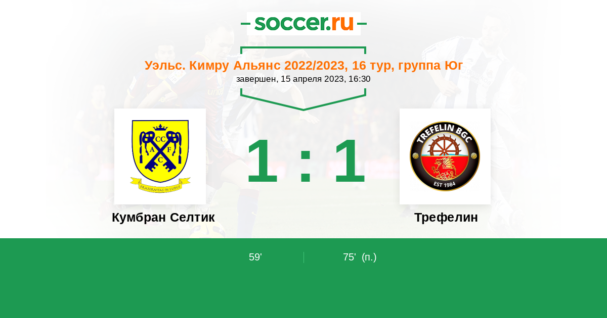 75’ 1:1(П) D. Thomas