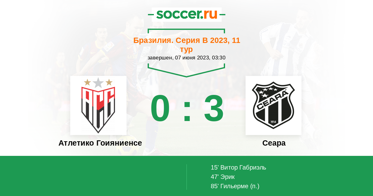 47' (0:2) Эрик (11) (Витор Габриэль (63))