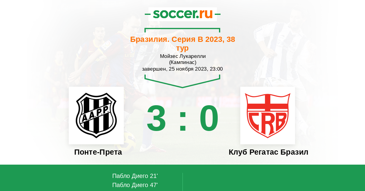 21' (1:0) Пабло Диего (11) (Джех (19))