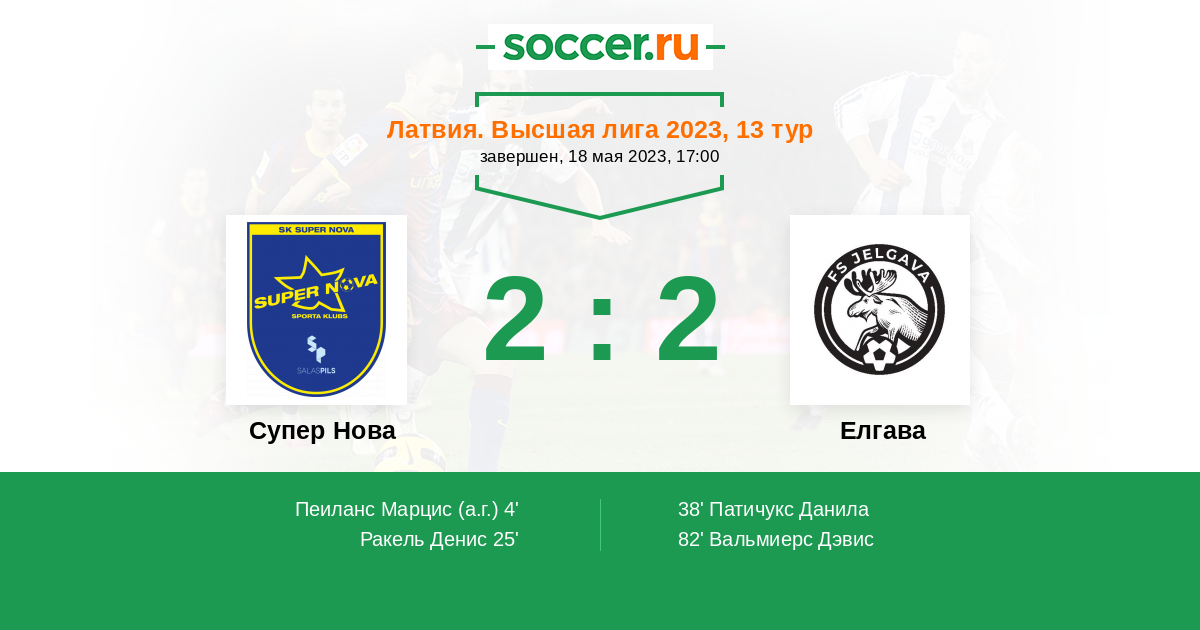 82' (2:2) Вальмиерс Дэвис (11) (Патичукс Данила (70))
