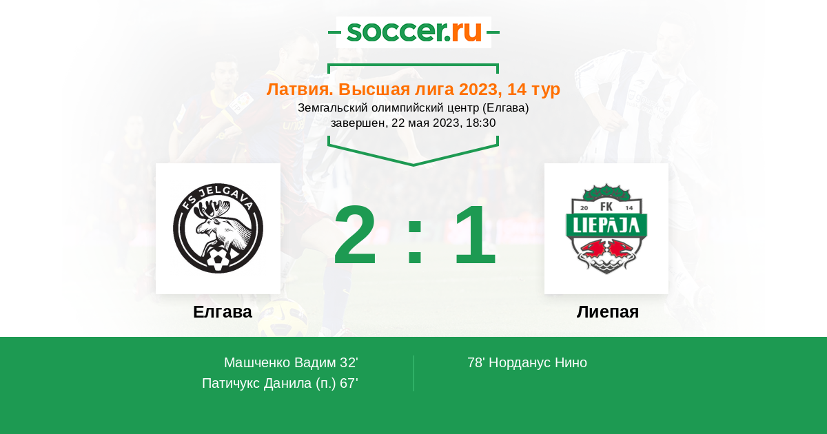 32' (1:0) Машченко Вадим (26) (Рубенис Оскарс (71))