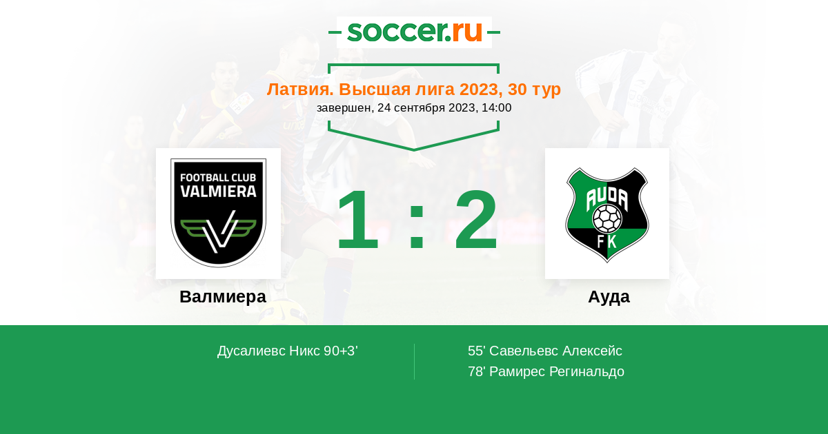90+3' (1:2) Дусалиевс Никс (18) (Густаво (7))
