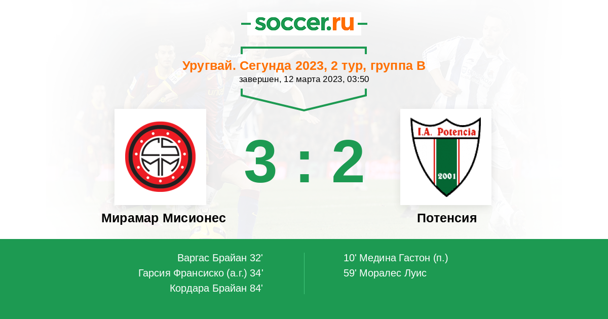 34' (2:1) Автогол Гарсия Франсиско