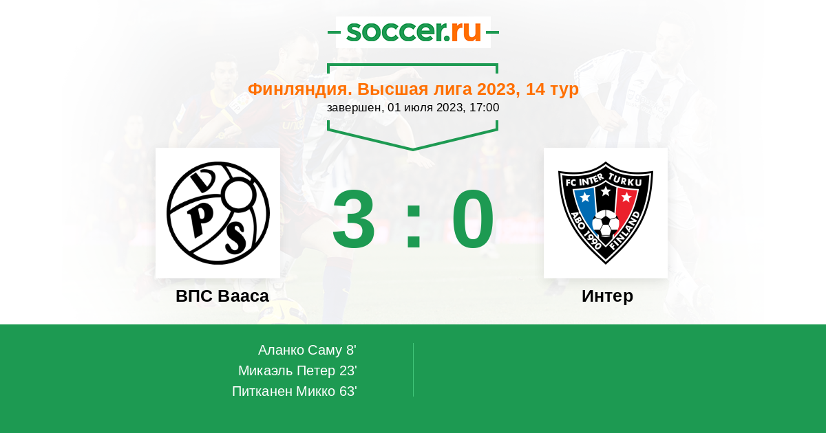 23' (2:0) Микаэль Петер (14) (Энгстрём Йеспер (4))